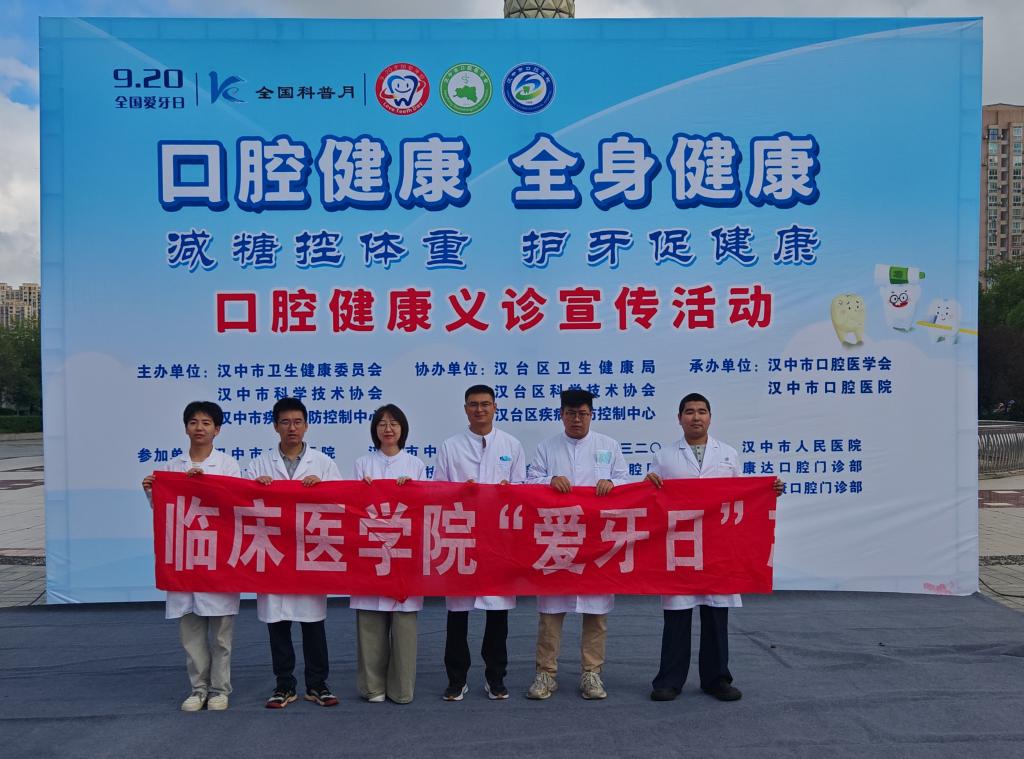 2025年9月19日上午,临床医学院科技志愿服务团队在汉中市中心广场参加了以“口腔健康、全身健康”为主题的9.20全国爱牙日义诊活动。