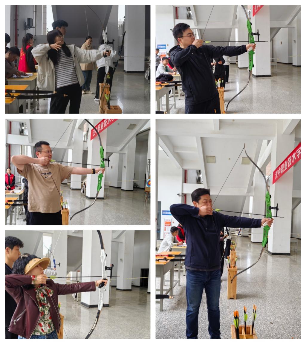 活动现场气氛热烈,欢声笑语不断。在个人项目中,教师们各显身手,飞盘场上精准投掷,射箭区域屏息凝神,指压板跳绳挑战勇气与耐力,抖抖球项目更是趣味横生,引得围观者阵阵喝彩。集体项目将气氛推向高潮,同心板竞速考验步调一致,“奔跑吧毛毛虫”需要全员协调配合,拔河比赛更是展现出临床医学院教师们的团结力量与拼搏精神。