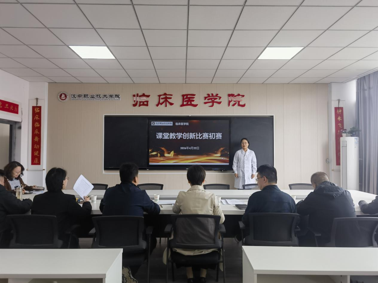 2026年4月22日下午,临床医学院在2号教学楼514教室举行2026年课堂教学创新比赛初赛。本次比赛邀请教务科研处副处长马慧玲、临床医学院各教研室主任、副高以上职称教师担任评委。比赛由临床医学院综合办主任马珊珊主持。