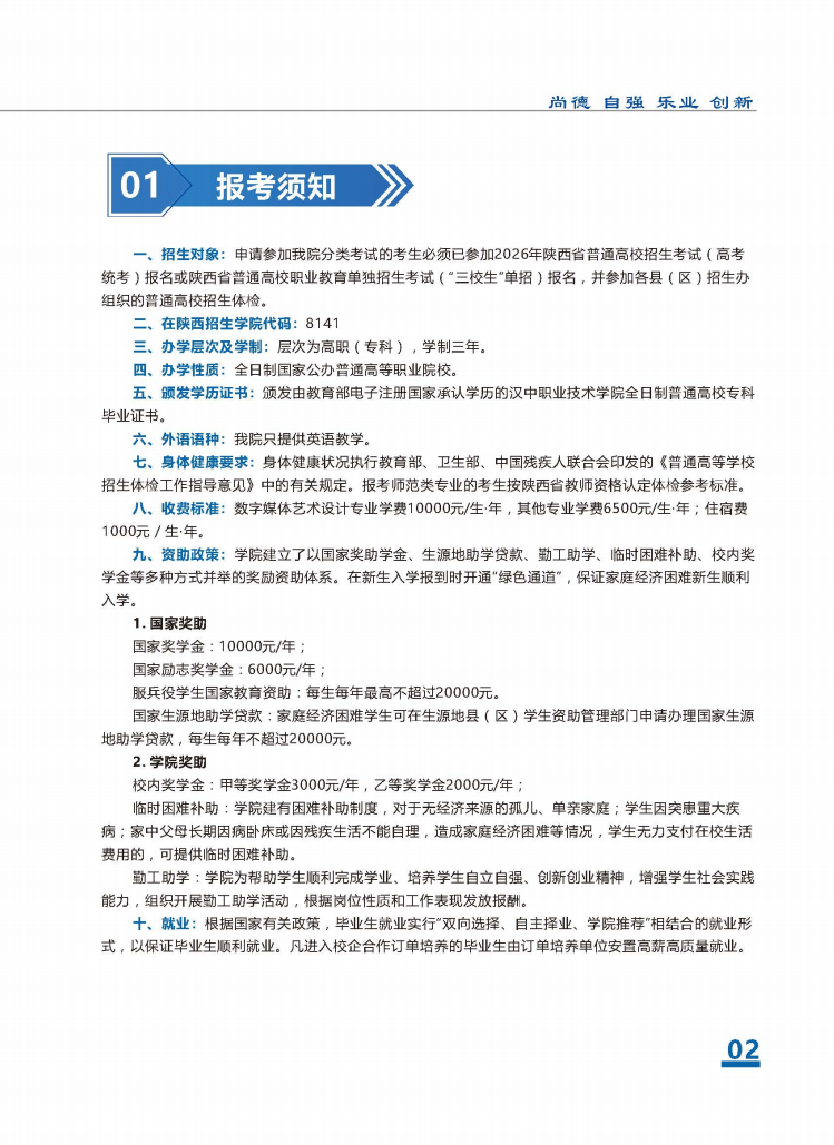 汉中职业技术学院2026年分类考试招生报考指南